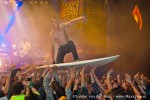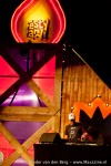 Het was echter niet alleen het rockgeweld dat de klok sloeg. Dance-liefhebbers kwamen in de Dance Palace en de Jupiler Ballroom gretig aan hun trekken. DJ’s als Tony Star (Sterretje), DJ Jerome, Dennis van der Geest en Mental Theo wisselden in die laatste af met een act als Dries Roelvink… Een vreemde eend in de bijt in de tent, die wellicht beter in de Eetertaintent geprogrammeerd had kunnen worden. Hoewel er natuurlijk ook gegeten moest worden, en dat kon perfect in de goed georganiseerde vreetschuur op Festyland. Waar festivalvoedsel vaak gereduceerd wordt tot halfbakken kartonnen pizza’s en frietjes waarvan de eetlust je snel vergaat, was het ditmaal op Festyland perfect geregeld. Snelle Jelle, die in de ‘Spektakulair’ stond te hippen met zijn draaitafels, had qua naam zeer zeker de leiding in handen qua voedselproductie, waarvoor een groot compliment ditmaal!