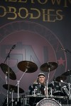 Ontwaken op een festival vereist altijd wat weerbaarheid maar gelukkig zijn het al gauw de goede vooruitzichten die zwaarder wegen. De tweede Bospop dag belooft weer een zonnige te worden, met een stevig gitaar georiënteerd programma. Over dat stevige niks gelogen trouwens; bij aankomst op het festival terrein klinkt de krachtige, melodieuze rock-metal van de Nederlandse Smalltown Nobodies al over het veld. Van een rustig eerste bandje geen sprake dit jaar. Aangevoerd door zanger Lain Barbier schudt de band het reeds aanwezige publiek direct wakker en dat bevalt prima.