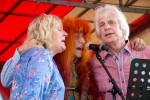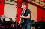 De begeleidingsband was nog steeds zoals in de vorige elf edities deze van Bart Van Den Bossche, nu aangevuld met de toetsenman van Jelle Cleymans. Iedereen die al eens in Olen aanwezig was kent het concept van het festival. In deel één komen vele gasten een liedje of vier zingen en daarna komt één bepaalde artiest een concert brengen van bijna anderhalf uur. Stipt om 14 uur werd er afgetrapt door Jelle Cleymans met zijn huidige radio hit ‘Zonnige Dagen’. Dit nummer kent wel iedereen die naar radio twee luistert en dus werd er al dadelijk meegezongen. Jelle stond voor de moeilijke opgave om Bart Van Den Bossche te vervangen, maar ik denk dat ik mag zeggen dat deze sympathieke jongeman dit met verve gedaan heeft. Jelle kende het Olense publiek ook al wel een beetje want hij was hier al te gast op het kleinkunstfestival. Na een paar nummers was het dan tijd om de eerste gast Jackobond voor te stellen. Deze jongedame raakte bekend via het tv programma ‘Zo Is Er Maar Een’ en heeft sindsdien al een paar hitjes op haar naam. Gisteren bracht ze onder andere ‘Iedereen Is Hier vrolijk’ en ‘Wat Een Mooie Dag’. Terwijl ze het podium verliet kreeg ze van presentator Jelle nog een compliment over haar mooi achterste, waarop de zangeres positief reageerde door eens met haar achterste te schudden. De volgende gasten Miek en Roel komen bijna elk jaar naar Olen, dikwijls samen met Elly en Rikkert, maar nu met hun tweetjes. Dit duo staat al bijna vijftig jaar op de planken en er straalt nog steeds veel plezier van hen uit als ze op het podium staan. Zij hebben keuze genoeg om te kiezen in hun repertoire. Vandaag kozen ze voor het mooie ingetogen ‘Land Van Saeftinge’, en de vrolijke nummers ‘Jij en Ik’ en ‘Op Naar Amerika’. Als ode aan Bart kozen ze voor ‘Ik Heb Bijna alles Wat Mijn Hart Verlangt’. Miek en Roel kregen een daverend applaus van het Olense publiek.