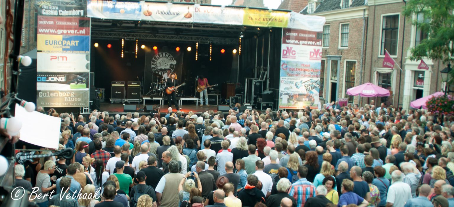 Culemborg Blues vierde dit jaar haar 20 jarig bestaan. Begonnen als een kleinschalig locaal bluesevenement is het inmiddels uitgegroeid tot een volwassen evenement dat publiek vanuit het hele land trekt. Culemborg Blues is een festival dat door het hele stadje loopt. Totaal zijn er op 5 locaties 19 bands en artiesten te bewonderen geweest. Teveel voor uw verslaggever en fotograaf om allemaal te verslaan. Vandaar dat wij een overzicht van de 2 grootste podia hebben gemaakt.