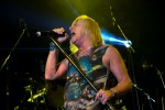 Nu was het alleen nog wachten op de band die heel wat aanhangers had en die op deze Vostertfeesten in 2012 al de pannen van het dak speelden. En dit jaar zouden ze nog beter doen hadden ze beloofd. De band waarover we het hebben is niemand minder dan Uriah Heep. Het werd drummen op de voorste rijen tegen de tijd dat de jongens zouden beginnen spelen. Ze kwamen één voor één het podium op met frontman Bernie Shaw als laatste. Het geluid was heel wat decibels hoger dan bij de vorige optredens. Van bij het begin dreunden de zware bas tonen door merg en been. Bernie bespeelde al dadelijk zijn publiek terwijl hij het hele podium in beslag nam. Er werd gestart met nummers als ‘Overload’, ‘Sunrise’ en ‘Stealin’ en wat onbekende nummers. Drummer Russell Gilbrook teisterde zijn Natal drums met dubbele bas drum of was het zijn laatste concert. Het publiek danste en de armen waren constant in de lucht. Het is niet mijn soort muziek en het was al zeker veel te luid, maar gelukkig verschillen smaken want het overgrote deel van het aanwezige publiek had het duidelijk naar hun zin. En dat is toch de bedoeling, of niet? Naarmate het concert vorderde en het publiek behoorlijk opgewarmd geraakte kwam het betere en oudere werk met ‘Look At Yourself’,’Gypsy’ en ‘Lady In Black’. Zanger Bernie Shaw daagde het publiek ook uit om mee te zingen. Het einde van het concert kwam voor velen weer te vroeg en er werd luid op we want more geroepen. En het publiek kreeg wat het wilde, meer en zelfs veel meer. Tijdens ‘Free’N’Easy’ nodigde Bernie al de dames uit op met de band te komen swingen op het podium. Dat kwam niet in dovemans oren terecht want er slaagden ongeveer twintig dames om een plaats te bemachtigen naast hun idolen. Ze beleefden een fantastische avond. Als laatste toegift speelden Mick, Bernie, Phil, Russell en Davey de grootste hit die Uriah Heep ooit gehad heeft. Bij deze ‘Easy Livin’ ging het dak er bijna af. Het was voor Uriah Heep een zegetocht over de ganse lijn, wat hun een oorverdovend applaus opleverde. Spijtig genoeg geen filmpjes van Uriah Heep en alleen maar foto’s omdat men maar tijdens de drie eerste nummers opnamen mocht maken. Volgend jaar wordt het een jubileum editie want dan krijgen we de vijftiende editie van de Vostertfeesten.