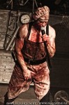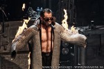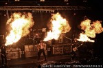 Stahlzeit klinkt wat losser. Vooral in de intro’s van sommige nummers (zoals bij het nummer ‘Rammstein’) zijn de klanken minder Rammstein achtig. Misschien dat dit te maken heeft met het feit dat ze optraden met een andere toetsenist dan normaal. De rol van Flake moest worden overgenomen, daar Thilo Weber in het ziekenhuis lag. Het toneelstukje bij o.a. ‘Mein Teil’, waarin Flake in de ketel beland en onder vuur wordt genomen, is voor Rammstein begrippen sober. Waarschijnlijk i.v.m. de veiligheid wordt de vlammenwerper maar even gebruikt en gaat het nummer vlug verder. Ook de vuurwerkboog bij ‘Du Reichst Su Gut’ mist twee stukken vuurwerk. Het nummer ‘Pussy’ biedt “slechts” een schot confetti, waar we als Rammstein fans ladingen schuin gewend zijn. Ondanks de concessies die gedaan moeten worden voor een indoor optreden in een relatief kleine zaal, blijft er meer dan voldoende spektakel over. Wat ik wel miste was de sullige lijdende rol die Flake met zich meedraagt. Daar kan een invaller wat minder aan doen, maar valt wel op.