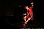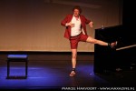 Het eerste halfuur van de avond was voor Pepijn Schoneveld. BNN kijkers zullen hem vooral kennen uit de tv serie Feuten. Naast acteur is Pepijn cabaretier. Hij was in 2013 finalist bij het Leids Cabaret Festival. Met z’n nieuwe programma “Meneer Jongetje” speelt hij het kind in een maatpak. Of eigen lijk is hij het jongetje in maatpak. Met drie losse stukken uit zijn avondvullende show toont hij zich een volwassen man, maar met een bijna puberale maak. Als de studenten humor uit Feuten. De onderbroekenlol en uitwerking van zijn fantasievolle avontuur bij de spermabank is niet al te origineel. Zijn amicale overkomen en absurdisme neemt ook wel weer een kinderlijke vertedering met zich mee. Hij voelt zich vrij op het podium en heeft een aanstekelijk overkomen, waarbij ik denk dat de losse stukjes als puzzelstukjes beter tot zijn recht zullen komen als een geheel in het hele programma.