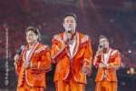 Het concert begon met een spetterende opening: Gerard Joling, Jeroen van de Boom en René Froger kwamen op in een immens grote molen en zongen het nummer ‘This is what it feels like’ compleet met confetti en vuurwerk, erg mooi gedaan. Aangekomen op het grote podium begonnen de heren meteen met het publiek te bedanken dat zij zich aan de dresscode hadden gehouden. En niet geheel onterecht want krijg maar een compleet uitverkocht voetbalstadion zover in de juiste kleuren te verschijnen. En eerlijk, het zag er schitterend uit: de bovenste ring was volledig in rood, de onderste ring compleet in wit en beneden op de grond was iedereen in blauw gekleed.