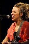 De gedreadlockte zangeres uit Perth heeft er al 6 weken Europa opzitten als ze in “Station Zuid” voor het voetlicht treedt. Haar begeleiders van het eerste uur zijn dan al naar huis, zodat vanavond (en de rest van de tour?) de begeleiding aan Joey Spijker-drums, Tom Clarke-bas en Daan Krakers-gitaar, banjo, mandoline toevertrouwt wordt. De violen, trompetten en saxofoons die op haar cd’s veelvuldig voorkomen zijn thuis gelaten en eerlijk gezegd: ,,Hoe vakkundig ze ook werden bespeelt, ik mis ze geen moment”!