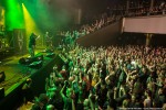 Maar eerst krijgen we punk en metal. De in wit geklede mannen van Hounds spelen electropunkrock songs van hun in 2013 verschenen album ‘Begin Transmission’, met riffende gitaren en een flinke beat als resultaat. De Braziliaanse trashmetalband Soulfly staat als tweede geprogrammeerd voor deze avond, en speelt songs als ‘Roots Bloody Roots’, ‘Rise of the Fallen’ en ‘Back to the Primitive’ in één moeite achter elkaar door. Soulfly-zanger Max Cavalera (ex-Sepultura) is fan van voetbal en dat zullen we weten ook: halverwege de show heeft hij een oranje voetbalshirt aangetrokken, met achterop nummer 10 (Sneijder) en gooit hij een t-shirt het publiek in, dat daarna ‘Ole Ole Ole Soulfly’ mag gaan scanderen.