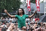 Rowwen Hèze is vandaag de enige band die mag spelen in de volle zon. Maar die band kent weer haar beruchte bierregens en wordt het publiek toch nog nat. Ali B is dan weer voor de wat jongere fans interessant. Samen met Brownie Dutch, Yes-R en Daryll weten ze het publiek goed te vermaken. Ali B toont zich dapper en laat zich in de regen ronddragen door het publiek. De oude rockers van de Golden Earring lokken vervolgens weer de papa’s naar voren. In de stromende regen laten de heren zien waar ze goed in zijn, maar het echte rauwe ruige randje is er helaas toch wel af. Barry Hay is wel zo brutaal om een (terechte) opmerking te maken over de irritante basdreunen die ogenschijnlijk uit de kerk naast het festival, maar in werkelijkheid uit de dance tent komt.