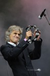 The Alarm blijkt ook al slachtoffer van de crisis te zijn en bestaat -in dit geval op Bospop- alleen nog maar uit Mike Peters. ‘He likes to travel light’ want waarom zou je een band meenemen als je met een geluidsband ook goed uit de voeten kan. Verder begeleid hij zichzelf op gitaar en mondharmonica. Hij doet dat zeer geroutineerd en in zijn set komen veel aha momenten voorbij zoals met ‘Where Were You Hiding When The Storm Broke’. Als afsluiter natuurlijk ’68 Guns’, de eigenlijk enigste hit van de band, die alweer uit 1983 dateert. Ver weg van de kust, die zij zo graag bezingen, voelt Bospop voor Bløf ook als thuis komen. Zij gaan er meteen lekker tegen aan en laten horen dat zij wel degelijk rocken kunnen. Als Paskal Jacobsen vol enthousiasme roept dat ze er op en overheen gaan omdat het toch de laatste show voor hun vakantie is, houd ik mijn hart vast. Bij hun Bospop debuut in 2003 was hij ook zo blij en dat resulteerde na ca 20 minuten in gescheurde enkelbanden. Met het concert van vandaag erbij staat de teller dus op 3,5 optredens.