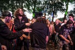 Te zien aan het aantal Papa Roach t-shirts op het Nirwana terrein is de afsluitende band van de vrijdag op Nirwana behoorlijk populair. Papa Roach is opgericht 1993 en had haar grootste succes met het album ‘Infest’ uit 2000 met daarop grote hits als ‘Last Resort’ en ‘Blood Brothers’. ‘Blood Brothers’ is onsterfelijk geworden in de soundtrack van de videogame ‘Pro Skater 2’ wat ook de mannen van Navarone zich nog wisten te herinneren. Maar de band is doorgegaan met het maken van nieuwe muziek en heeft nog steeds een enthousiaste fanbase, waarin niet alleen ouwe rockers de dienst uitmaken, tekenend waren bijvoorbeeld ‘papa and son Roach’, een vader en zoon beiden gehuld in Papa Roach t-shirt. Zanger/rapper Jacoby en zijn companen bestormen het podium met het bijtende ‘Between Angels and Insects’. De energie van de opener wordt moeiteloos de hele set volgehouden. Met name nummers van het al genoemde ‘Infest’ worden gespeeld, maar ook recenter materiaal zoals ‘We are the ones still swinging’ van ‘The Connection’ en ‘Scars’ van ‘Getting Away With Murder’ worden enthousiast ontvangen. De band heeft er zichtbaar zin in en het “We’re a long way from our homes in California, but you guys make us feel at home” klinkt dan ook welgemeend. Wanneer het afsluitende ‘Last Resort’ wordt ingezet geven band en publiek geven nog even alles en wordt de Nirwana weide één grote moshpit.