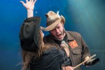 Het eerste optreden wat ik zaterdag zie is dat van Poor John in de Muziekagenda tent. Poor John is een tweemansband die zichzelf omschrijven als “Een armzalig goed bandje”. Twee broers, de ene bespeelt het drumstel en de bas, de ander gitaar, mondharmonica en hi-hat. Het klinkt als een klok en de mannen hebben er zin in! Country, Rockabillie en blues, de heren draaien hun er hun hand niet voor om, een cover van Creedence Clearwater Revival wordt moeiteloos afgewisseld met country traditionals als “Rawhide” en een ‘Cowboyliedje’ als “Buz Buz A Diddle It”. Het enthousiasme van de broers op het podium slaat over naar het publiek en er vormt zich een voorzichtige linedance voor het podium.