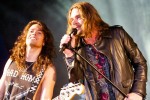 In de 3FM tent was Dotan de opener en die paste qua muziek prima in de overvolle tent met een set prachtige gevoelige luisterliedjes. Tweede topact in de Megatent was Ad van den Berg’s Moonkings. De band uit Twente speelt met de tijd beter. Inmiddels al ruim een half jaar op toernee. Ad heeft een zeer goede band om zich heen verzameld met 3 jonge toppers. Zanger Jan Hoving is een echte rockster aan het worden. Een strot die je nodig hebt bij hardrock en ook qua podium acte de présence komt hij inmiddels prima uit de verf. Je kunt de teksten die hij zingt echt goed horen en met veel enthousiasme worden de nummers gebracht. Toppers als ‘Burning Heart’ en ‘Here we go again’ ontbraken natuurlijk niet. Maar ook de eigen nieuwe nummers van de Moonkings zoals ‘Good Thing’ en ‘Nothing touches Rock en Roll’ knalden de tent omver. Nederland mag trots zijn op deze band waarbij je merkt dat ze nu ingespeelt zijn gelet op de grappen die Jan op het podium maakt. Ad is zijn Amerikaanse verleden niet vergeten dat zie je aan zijn kleding (tijgercolbert) en gebaren. Een klassiek mini-rock concert met een drumsolo in het midden van het uurtje live rock. Ulft trilde op haar grondvesten.
