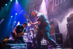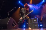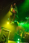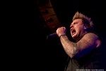 Leadzanger Jacoby Shaddix van Papa Roach loopt, springt en danst het hele concert door, hij heeft energie waar je U tegen zegt! Maar hij is niet de enige die energie genoeg heeft, ook zijn (bas)gitaristen Jerry Horton en Tobin Esperance springen en lopen het podium op en neer. Dan kan het publiek niet achterblijven: een ‘oldskool’ moshpit is een feit, eentje die ik nog nooit zo gezien heb: achter elkaar aan worden rondjes gerend, steeds sneller, en dan gaat het met ontbloot bovenlijf beuken, trekken, duwen, kopstoten gevend en springen beginnen. Er vallen mensen om, maar die worden snel weer overeind getrokken, met de armen om elkaars schouders rennen de mannen naar voren, tanden gaan door lippen, maar de sfeer is en blijft helemaal top. De tweede song na de biss, ‘Dead Cell’, draagt Jacoby op aan ‘the Warriors in the Pit’. Dan klimt een oudere man het podium op, die aan zijn benen weer het podium afgetrokken wordt, en springt een meisje vanaf het podium het publiek in, stagediven it is! De band sluit deze energieke en ‘crazy’ avond af met hun grootste hit ‘Last resort’. Na een ‘Thank you so much, we love you and you’re like family’ dirigeert Jacoby nog kort het publiek, wat Papa Roach, Papa Roach, Papa Roach scandeert.