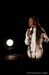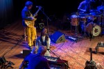 jazzzine_DSC_6697_DxODit voorjaar ging de theatertour van dat album, ‘Lean on Me – The songs of Bill Withers’ in reprise en vanavond staat ze hier, in de mooie zaal “Cloud 9” van het nieuwe Tivoli/Vredenburg in Utrecht. Ze opent op gitaar met een ingetogen ‘Ain’t no sunshine’, gezeten op een houten kruk. Met zachte stem vertelt ze over de achtergrond van haar keuzes voor dit album en, natuurlijk, over haar band met het werk van Bill Withers. Tussen ‘I don’t want you on my mind’, ‘Stories’, ‘Sweet Wanomie’, ‘Grandma’s Hands’ en ‘Can’t write’ left handed’ wordt duidelijk waarom. Ook Withers’ carrière kwam niet bepaald uit de lucht vallen. Als jongste kind van een mijnwerker uit Slab Fork en later monteur van vliegtuigtoiletten eindigen in een muziekcarrière waarin je nummers gecoverd worden door o.a. Barbra Streisand, Michael Jackson, Liza Minelli, Tom Jones en Joe Cocker. Het is echter vooral de weg ernaar toe die, door Sabrina’s vertellingen, anekdotes en vertolkingen van zijn muziek, haar performance extra bijzonder maakt. De eerste helft van de avond blijft met ‘Lonely town, lonely street’, ‘Better of dead’ en ‘Harlem’ vooral ingetogen, waarbij het ook het begeleidende LeslieNielsen trio perfect maatwerk levert. Less is more, denk ik regelmatig, als Salle de Jonge (drums), Niels Spee (hammond, bass synth) en Bas van der Wal (gitaar) een deken van mooi getimede accenten draperen over Sabrina’s gevoelige zang.