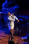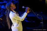 Tijdens de pauze wordt een foto van een berustende Bill Withers op het projectiescherm achter het podium getoond. De tweede helft wordt geopend met ‘Just the two of us’ met de originele muziek op band. En dat laatste was een prelude voor Sabrina’s samenwerking met het Metropole Orkest dat virtueel aanwezig was in Tivoli, geprojecteerd op de achterwand, beginnend met ‘Kissing my love’. Daarna is het toch echt gedaan met de rust, want een crescendo van een paar nummers volgt, eindigend met een stuwende versie van ‘Do it good’. Het contrast met het optreden vóór de pauze kan niet groter zijn, in alle opzichten. Starke, nu gekleed in stijlvol wit laat duidelijk zien en horen dat ze met hetzelfde gemak ook flink kan vlammen, en betrekt daar niet alleen de band maar ook het publiek bij. De stemming is nu definitief omgeslagen van luisteren en genieten naar stevig uit je dak gaan, wat met name op het balkon van Cloud 9 te merken was aan de stijgende temperatuur. Wat een veelzijdige dame is hier aan het werk! ‘Use me’, ‘Who is she’ en ‘Let it be’ brengen de performance van de èrg prettige combinatie Starke/LeslieNielsen tot een einde, beloond door een welverdiend stevig applaus. Als toetje wordt tenslotte nog ‘Lean on me’ en ‘Lovely day’ geserveerd waarna een zichtbaar tevreden publiek, duidelijk onder de indruk van wat het zojuist heeft meegemaakt, huiswaarts mag keren.