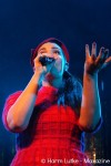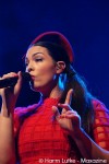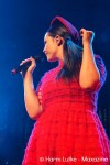 Samen met haar 8 koppige band, waarbij vrijwel ieder bandlid 2 of 3 verschillende instrumenten bespeeld, veranderd zij de Limburgzaal tot een feestzaal. Vooral bij uptempo nummers als Pack Up The Louis en Dr Wana-do laat het publiek zich niet onbetuigd. Voor Completely verwisseld ze haar stijlvolle rode jurk voor een zwart/wit geruit exemplaar, maar van diva gedrag is ondanks haar grote successen niks te merken. Integendeel, de pumps worden voor Just One Dance uitgegooid en ze vervolgt het concert verder blootsvoets.