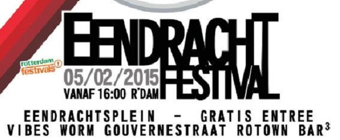 Een nieuw jaar, een nieuw Eendracht Festival. Na een bomvolle en knallende Pre Party in Rotown en Bar3 op 30 december, maakt de rest van het centrum binnenkort weer plaats voor een nieuwe editie van het gratis Rotterdamse showcasefestival. Op donderdag 5 februari 2015 staan de zalen wederom vol met talentvolle, creatieve Rotterdammers, die gezamenlijk de binnenstad levendiger maken met muziek, kunst en ondernemerschap. Tijdens de aankomende wintereditie van het Eendracht Festival kun je vanaf 16:00 uur meer dan 100 Rotterdamse muzikanten, kunstenaars, organisaties en ondernemers checken bij de 5 festivallocaties op en rond het Eendrachtsplein.
