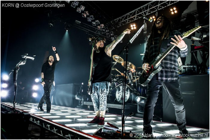 Het is donderdagavond 29 januari, en voor de komende avond en nacht wordt bar slecht weer verwacht. Oosterpoort in Groningen maakt zich op voor de eerste show op het Europese vasteland in Korn’s huidige tour en de enige die ze in Nederland zullen geven. Tot 2 dagen terug deelden ze nog het podium met Slipknot en verrasten ze de wereld toen ze op vrijdagavond in Wembley samen met Slipknot het nummer ‘Sabotage’ van Beastie Boys coverden. Na de show in Birmingham afgelopen dinsdag scheidden hun wegen. Vandaag staat Korn dus in Oosterpoort, en aanstaande zondag staat Slipknot in HMH.