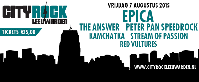 CityRock Leeuwarden is een festival dat deze zomer niet gemist mag worden. Weinig festivals weten met slechts zes bands zo’n gevarieerd programma binnen de rockmuziek neer te zetten als CityRock. Met de toevoeging van The Anwser, Peter Pan Speedrock, Kamchatka en Red Vultures, naast eerder aangekondigde Epica en Stream of Passion, is de line up van het festival nu rond.