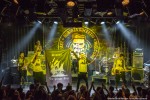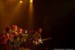 Inmiddels is de kleine zaal helemaal gevuld met liefhebbers van de zogenaamde balkanbeat. De acht artiesten van Dubioza Kolektiv staan op het podium gekleed in geel/zwarte sportoutfits. Alsof Borussia Dortmund vanavond de Melkweg plat gaat spelen. Dat laatste klopt wel want bij de eerste tonen begint de kleine zaal te kolken. Het is meteen duidelijk dat de meeste mensen uit het zelfde land komen als de artiesten want menigeen staat de teksten mee te zingen.