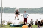 Het eigenlijke festivalterrein wordt van de camping gescheiden door een toegangspoort met een dak van gras, waardoor je als het ware een konijnenhol betreedt. Het muziekfestival vindt plaats op drie podia, ieder genoemd naar een konijnenras. Het hoofdpodium van Down the Rabbit Hole, Hotot, wordt vandaag onder andere bevolkt door Blaudzun, Oscar & the Wolf, Ryan Adams en Damien Rice. Op de Teddy Widder speelt bijvoorbeeld de legendarische Patti Smith. Rondom de muziekpodia gebeurt van alles, zo is er een walvisbios en draaien her en der dj’s hun plaatjes. Veel bezoekers grijpen de zomerse temperaturen en het avondzonnetje aan om lekker in het gras liggend van de zon, hun biertje en de mensen op het festival te genieten.