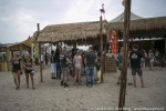 ‘I Call You Honey’, ‘Come on Down’ en ‘Sunday Morning’, bijna iedereen kent ze wel of heeft ze wel eens ooit gehoord. De heerlijke zomerse meezing nummers van Sunday Sun. Het was dan ook aan die band de taak om de muziek programmering op het hoofdpodium te openen. De lucht is nog grauw, hier en daar vallen er wat regendruppels naar beneden, maar dat weerhield niks. Een aantal handen vol publiek verzamelde zich vooraan bij het podium.