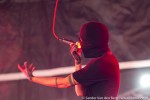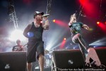 De volgende dosis energie was op het andere veld te vinden in de Heineken in de vorm van Twenty One Pilots. 1H6A1359Twee jaar geleden stond het duo al in de veel kleinere Charlie en voor veel bezoekers was dat optreden al bestempeld als hoogtepunt. De eerste drie rijen deden waren vooral bezet door jonge meiden met de bivakmutsen en witte brillen op, het handelsmerk van Twenty One Pilots. Zanger Tyler Joseph komt met zwart geverfde handen en hals op welke nog niet te zien is onder de bivakmuts. Zijn alter ego is  Blurry Face wat tevens de titel van het tweede album. De verf staat symbool voor zijn (voormalige) onzekerheid en daarmee kunnen de tieners vooraan zich prima aan spiegelen en zingen de hele set letter voor letter mee. Drummer Josh Dun speelt live mee op de geluidstape, maar toch laat het duo wel zien dat ze zelf ook wat noten op (bas)gitaar, trompet en piano spelen. Muzikaal zit het prima in elkaar met een mix van reggae, trance, rock en pop maar is het vooral de energie en de act die het leuk houdt. Crowdsurfen met een compleet drumstel, de onvermijdelijke sitdowns, klappen en meezingen tot aan salto’s en veel springpartijen door de heren maakt het erg leuk om te kijken. Het slotapplaus was oorverdovend en ook de twee mannen uit Ohio stonden bijna verbaasd te kijken van de minuten durende ovatie. De bakvissen vooraan hebben zelfs een aquarium vol gehuild.