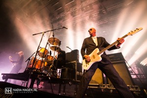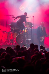 Ondertussen worden we door Ruben geïnformeerd dat Triggerfinger een native Eindhovenaar in haar gelederen heeft: Geluidsman Ken. En niet alleen dat, maar ook dat Ken’s ouder én schoonouders vanavond in de zaal zijn. ‘On My Knees’ is een van die Triggerfinger klassiekers die de essentie van de band blootlegt. Het nummer is opgebouwd rond een smerige gitaarriff en is spijkerhard, maar toch sexy door de stuwende baslijnen van Paul en de zang van Ruben.