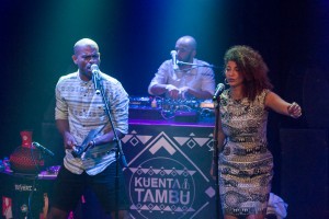 Kuenta i Tambú (KiT) is de percussiegroep van Roël Calister, broer van zangeres Izaline Calister. De roots van de band liggen in Curaçao en dan met name de Afrikaanse muzikale kant van het Caribische eiland. Verhalen en Drums is de letterlijke vertaling van de bandnaam en daar is eigenlijk alles mee gezegd. Swingende verhalen met een grote diversiteit aan (traditionele) percussie instrumenten zorgden voor een tropisch feest in de Oude Zaal. Stilstaan is geen optie, zelfs niet voor de Nederlandse stramme heupen van de meeste toeschouwers. De electronische beats, dancehall en bubbling doen het uitstekend in combinatie met de vrolijke gezichten van de band. Vooral ‘Jackhammer’ en ‘Lightswitch’ zijn nummers waarop de combinatie uitstekend tot z’n recht komen. Kuenta i Tambu was de waardige afsluiter van het avondprogramma.
