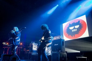 Bij binnenkomst was de dansvloer nog leeg, maar als de dames eenmaal de dansvloer hebben betreden (op de klanken van David Bowie met ’The Jean Gene’), volgden de heren van zelf. Slimme zet dus. Er waren opvallend veel vrouwen die waarschijnlijk Claw Boys Claw niet als hoogtepunt zagen, maar het totaalconcept wel goed konden waarderen. De vrouwen gingen voor de verandering eens mee naar een concert met een extra beleving. Eerst een DJ set van 2 uur, daarna een uurtje rocken met Claw Boys Claw en daarna nog 2 uur afbouwen met een puike DJ set. Ook de aanvulling met van klassieke muziekvideo’s (Blondie – Denis) was absoluut een meerwaarde. DJ El Salvo had diep in de schatkist gegraven en haalde daar vele vergeten pareltjes uit zoals bijvoorbeeld Simple Minds (I Travel’), Joe Jackson (‘Pretty Girls’) en Frank Zappa’s ‘Dancing Fool’.