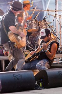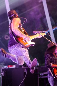 “Aloha!”, zo begroet Bear zijn publiek tijdens het intro van ‘Directions’. Het is een nummer dat relatief rustig begint, maar al gelijk voor een harmonieuze sfeer zorgde. Halverwege het nummer bouwt zich een instrumentale climax op, waar het publiek zich volledig in mee liet gaan. De klik tussen de band en het publiek was er al vanaf de eerste seconden en even leek het alsof het concert niet beter kon worden dan dat het dat was tijdens het eerste nummer, maar zowel de band als het publiek overtrof zichzelf tijdens het tweede nummer. De set overheerste met krachtige meedansnummers als ‘Aloha Ke Akua’, ‘Warrior People’, en ‘Risk It’, ‘Black As Night’, maar kreeg het publiek ook ademloos tot stilstand toen violist Tim Snider een, bijna zeven minuten durende, instrumentale intro speelde van ‘Great Spirit’ waarbij hij letterlijk zijn strijkersstok stuk speelde.