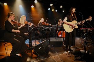 Siv Jakobson speelde in de studentensoos USVA. Een leuke kleine locatie waar ze gelukkig het licht goed op orde hadden zodat het hele gezelschap, strijkers en Siv goed in het licht stonden. Op haar sokken speelde en zong ze in mooie harmonie met de strijkers, waardoor het een goed geheel werd.