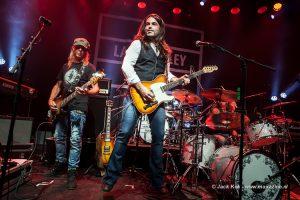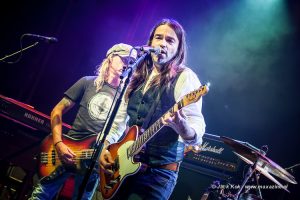volgde. Prachtig zoals dit team het tempo en volume in de muziek omhoog stuwde! Net als op Bospop is deze avond Søren Andersen te gast. Hij is de huidige gitarist van Glenn Hughes. Søren kreeg van Lachy alle ruimte om zijn kunnen in ‘Stop listening to the blues’ te laten horen. Hij toverde dan ook heel wat moois onder zijn snaren vandaan. Deze showman stond te stralen en Lachy genoot ook, dat was duidelijk te