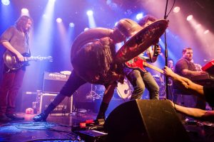 In de kleine zaal op de begane grond was de aftrap al om 19:30 uur door het Amsterdamse trio The Gwoof. Vijf jaar lang was The Gwoof een duo met drummer Boudewijn Bauw en Hammond organist Sander Bos. Nadat ze een demo verstuurde aan Patrick ”Rudeboy” Tilon was deze laatste zo onder de indruk dat ze besloten om gezamenlijk een EP te maken. ‘Gucci or Barefoot’ is inmiddels uit en deze werd met verve getoond. Tilon is de 50 al een tijdje gepasseerd maar op het podium is daar niets van terug te zien. Voor een vijftigtal toeschouwers ging hij tekeer als in zijn goede oude tijd bij Urban Dance Squad. “Rudeboy” is en blijft een icoon in het genre dat de cross-over is tussen (hard)rock en hiphop. De wisselwerking tussen drums, Hammond en zang werkt erg aanstekelijk en kan nog hele mooie dingen voort gaan brengen.