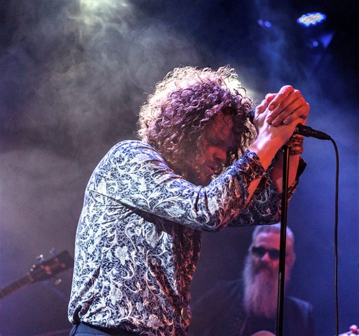 De show en daarmee ook de tour in de Muziekgieterij afgelopen vrijdagavond begon meteen met een rustig nummer van het nieuwe album: ‘Çome Into The World’, gevolgd door een drietal oudere midtempo rocksongs, waarbij vooral zanger Marcel Veenendaal door zijn bijzondere podiumpersoonlijkheid de aandacht van het publiek moeiteloos wist vast te houden. Aandacht was er volop van het publiek, maar van echt losgaan was nog geen sprake. Dit veranderde toen hij aangaf over te gaan op wat nummers van hun laatste album. Het publiek leek duidelijk benieuwd te zijn hoe de vernieuwende klanken van dit album live zouden klinken en het werd ook wel hoog tijd dat er na drie oudere nummers weer een nummer van het nieuwe album tijdens deze gelijknamige tour ten gehore werd gebracht. Ondanks dat de band al 18 jaar bekend staat met een rocksound, klonk ook een bluesy, funky sound uit de speakers. Zelfs blazers waren aanwezig om de nummers een geheel verrassende touch te geven.