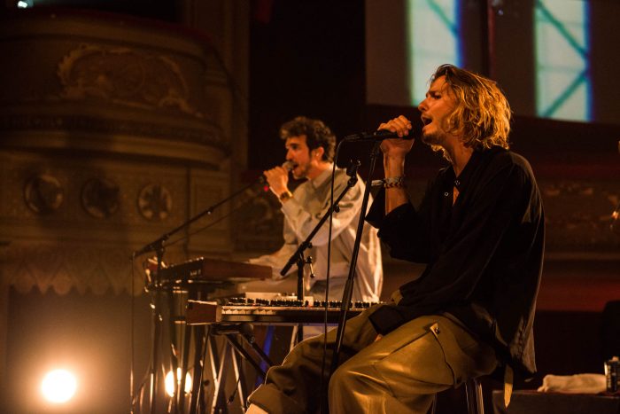 Ondanks het feit dat zanger en frontman Symons gedwongen was om zittend te zingen (‘I won’t be able to dance for you, but you can dance for me’) wist hij het publiek in te pakken met zijn melancholische teksten, zware beats en aanstekelijke bewegingen. Voorin de volle zaal werd gedanst en de basdreun deed de planken van de houten vloer trillen; een toevallig maar effectief onderdeel van de totaalervaring van een Warholaconcert.