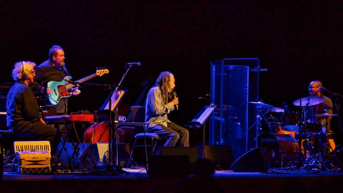 Met het peaceteken kwam de zanger op in Eindhoven, na North Sea Jazz en het Concertgebouw het derde concert van de zanger dit jaar op Nederlandse bodem. McFerrin rekte direct de stembanden op en liet al scattend horen waarvoor de goede man het waard was om te bezoeken. Dat Bobby zijn beste nummers meenam, was al snel duidelijk toen hij als derde nummer de klassieker ‘Joshua’ zong, begeleidt door zijn combo, bestaande uit toetseniste Gil Goldstein, bassist Jeff Carney en drummer (soms aangevuld metmulti-instrumentalist David Mansfield), dat niet afweek van hoe een traditioneel jazzcombo behoort te zijn.