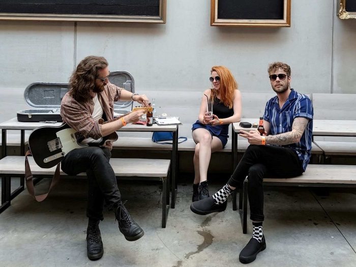 Vrienden en onbekenden feliciteren Yerra Yerra met het mooie optreden, eerder die avond. We zoeken een rustig plekje op, om na te praten en vooruit te kijken: Inge Henrotay, drummer Robson Mangelschots en de nieuwe gitarist Evert Nicolaï. Inge pakt meteen de puzzelstukjes weer op… “Mensen snappen soms niet dat muziek maken ook veel te doen heeft met randfactoren. Je bent samen aan het creëren. Zit dicht op elkaars huid… Dan moet je elkaar aanvoelen, open zijn en met feedback om kunnen gaan.” Inge analyseert en doceert zoals zij dat zo goed kan, open en oprecht. “Het heeft vaak te maken met stukjes die samenvallen en die gewoon kloppen. Het is een soort magie. Dat kun je niet omschrijven. Je weet het pas als het er is.” Evert knikt. Hij lijkt de nieuwe, rustige factor in de band. En ook hij geniet: “Dat zag je vanavond ook duidelijk, die chemie.” Die had hij zelf al langer met drummer Robson…. “Ik heb al veel met hem gespeeld, ook samen een bandje gehad. En Inge kende ik natuurlijk al van Candle Bags.”