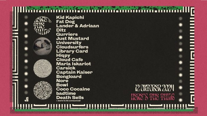 De tweede editie van Here’s The Thing is een feit! Met niet drie, maar vier podia (en natuurlijk weer een secret area – of misschien toch niet) geeft 013 op zaterdag 12 oktober weer een podium aan de beste upcoming, maar ook gevestigde post-punk, garagerock, psychedelische en indierock acts. Muziekgenres die zijn ontstaan als subcultuur en wortel hebben geschoten in steden als Brighton, Liverpool, Manchester en Berlijn. Waar mensen bewust zijn, bij de tijd maar een no-nonsense mentaliteit heerst. Verwacht weer stomende dansvloeren, rauw en brutaal, zwetende muzikanten die vol overgave de hardste, hoekige en bezwerende riffs de zaal in slingeren met de hoogste emotie. Op Here’s The Thing mag je jezelf verliezen, zijn wie je bent en dansen op een spekgladde plakkerige dansvloer tot je er letterlijk bij neervalt.