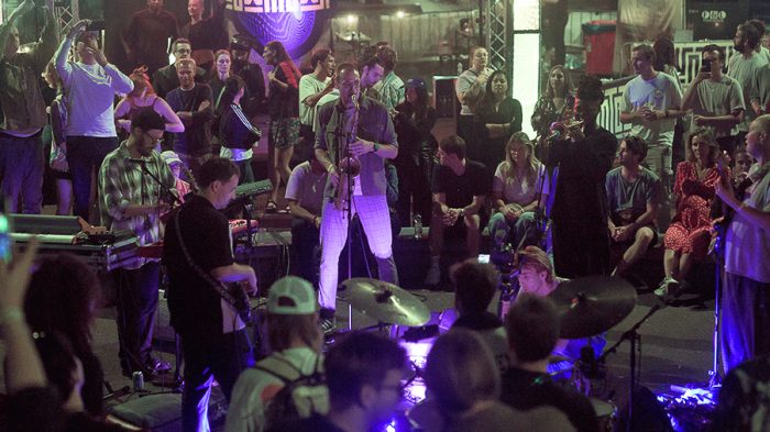 De band Collignon bouwde een waar dansfeest op het Eendrachtsplein. De drie stoer uitziende muzikanten trakteerden het publiek op een soort van global dance gitaar rave. Het werd dansen, dansen, dansen. Terug bij het Skatepark was het tijd voor het tweede ‘In The Round’ concert. Het in Rotterdam based Imaginarium speelde dub, afrobeat, hiphop en, met trompettist Peter Somuah en Jesse Schilderink op tenorsaxofoon in de gelederen, werd het toch ook wel erg jazzy. Bij het afsluitende concert van Omar Souleyman waande we ons op het Eendrachtsplein even ergens in het Midden-Oosten. De van oorsprong Syrische bruiloftszanger zong en klapte en het publiek op het afgeladen plein klapte vrolijk mee. Velen van hen waren speciaal voor dit optreden gekomen. Souleyman maakt debka-muziek: traditionele liederen uit het Midden-Oosten in het Koerdisch en het Arabisch, op een techno-beat. Hiermee heeft hij op vele grote festivals gestaan zoals Glastonbury, Pitchfork Paris en Roskilde. Geen kleine artiest dus.