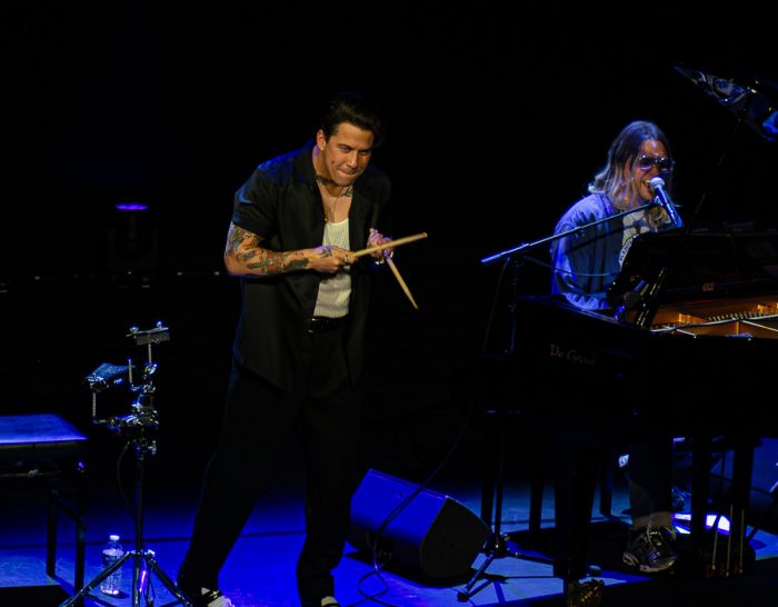 Het was duidelijk dat Rebel op de grappenstoel zat. De tweede aankondiging van Luke Christoffel luidde: “Met jezelf spelen is leuk, maar met een ander spelen is nog veel leuker!”. Dit lieten de twee goed blijken. Met een ietwat te klein krukje en twee ietwat te brede lichamen proberen ze samen een lied te spelen. Wonder boven wonder lukt dit en klonk het ook nog eens fantastisch.