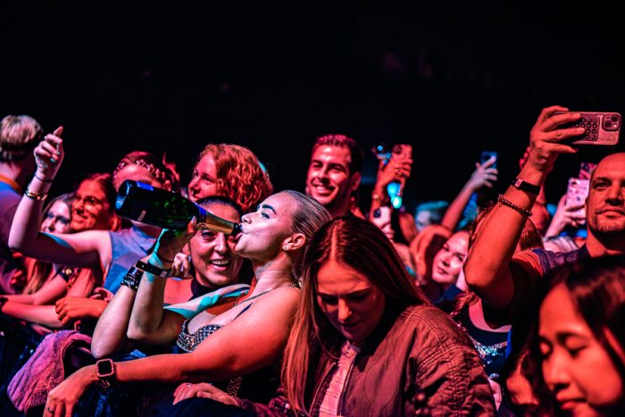 Na ‘In the Ayer’ werden de champagneflessen ontkurkt en het publiek in gespoten. Alsof dat nog niet genoeg was, kregen mensen de flessen zelf ook nog. Daarna ging het meteen verder met ‘Where Them Girls At’ en was de sfeer compleet losgeslagen.