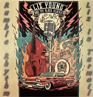 Top Cats, Reckless Ones, Reverend Horton Heat, Pepita Slappers. Met enige regelmaat verschijnen er rockabilly-platen die de moeite waard zijn, al moet gezegd dat veel bands in dat genre toch erg zwaar leunen op de erfenis van Elvis, Carl Perkins en, zij het veel later maar met een niet te missen invloed, Brian Setzer en zijn Stray Cats. Is dat erg? Welnee. Ook het Drentse Liz Young and the Black Slacks borduren vlijtig voort op die erfenis. Toch klinkt dit gezelschap anders dan menige rockabillyband. Om te beginnen beschikt Liz Young (Nathalie Vroon) over een strot waarmee je het behang van de muur kunt laten krullen. En dan is er die tomeloze, stuwende energie van drummer Bart Schouwink en bassist Freddy Vaanholt, waarbij je je afvraagt of die batterijtjes nooit eens opraken. Maar het geheim van deze band zit in de gitaar van Bas van Domberg, die bovendien alle tracks schreef. Zijn spel geeft ‘Rumble Rhythm’ een volstrekt eigen vibe met knetterharde riffs en giftige solo’s. Na een paar keer luisteren hoor je dat hij zijn invloeden niet alleen uit de rockabilly haalt, maar bijvoorbeeld ook uit metal en daarvoor in zijn gitaar gerust in drop-D stemt. Luister vooral eens goed naar het enige ingetogen stuk op de plaat ‘Mysterious Stranger’ en dan naar de afsluitende rammer ‘Zombie Night’. Veelzijdiger kan een gitarist niet worden in dit genre. Brian Setzer, move over. (Jeroen Mulder) (8/10) (Liz Young)