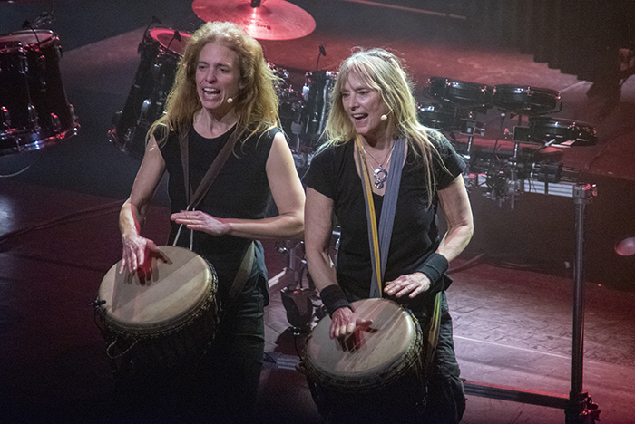 Er was ook veel humor. Tijdens een eerdere tour was er een prijsvraag, waarmee je een “luchtdrumstel” kon winnen. Dit keer werd dat instrument zowaar live gedemonstreerd. Na het zorgvuldig “klaarzetten” van het onzichtbare drumstel, speelden Olaf en Johan een compositie met daarin een verwijzing naar ‘In the Air Tonight’ van Phil Collins, inclusief het beroemde drumintro van dat nummer. Het publiek reageerde direct enthousiast. Het luchtdrumstel werkt met reflectoren die door een camera worden opgepikt. Dit maakt het een speels en tegelijk verrassend verfijnd onderdeel van de show. Wat begint als een grap, groeit uit tot een staaltje technisch vernuft en muzikaliteit. Het onzichtbare instrument vraagt om strakke timing en onderlinge afstemming, en juist daarin laten Olaf en Johan zien hoe goed zij op elkaar zijn ingespeeld.
