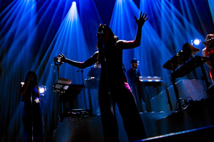 Eefje haar shows staan bekend om de sterke visuele uitstraling en de zorgvuldig uitgewerkte choreografieën op het podium. Dat werd ook in 013 meteen duidelijk zodra de eerste noten klonken. De Visser trapte de avond rustig en mysterieus af met het nummer ‘Lange Vinnen’. Achter een mistige waas verschenen de bandleden één voor één, en na een opbouwende intro kwam ook Eefje eindelijk tevoorschijn. Ze pakte haar gitaar erbij voor ‘Net na de val’ en de sfeer werd al gauw wat losser.