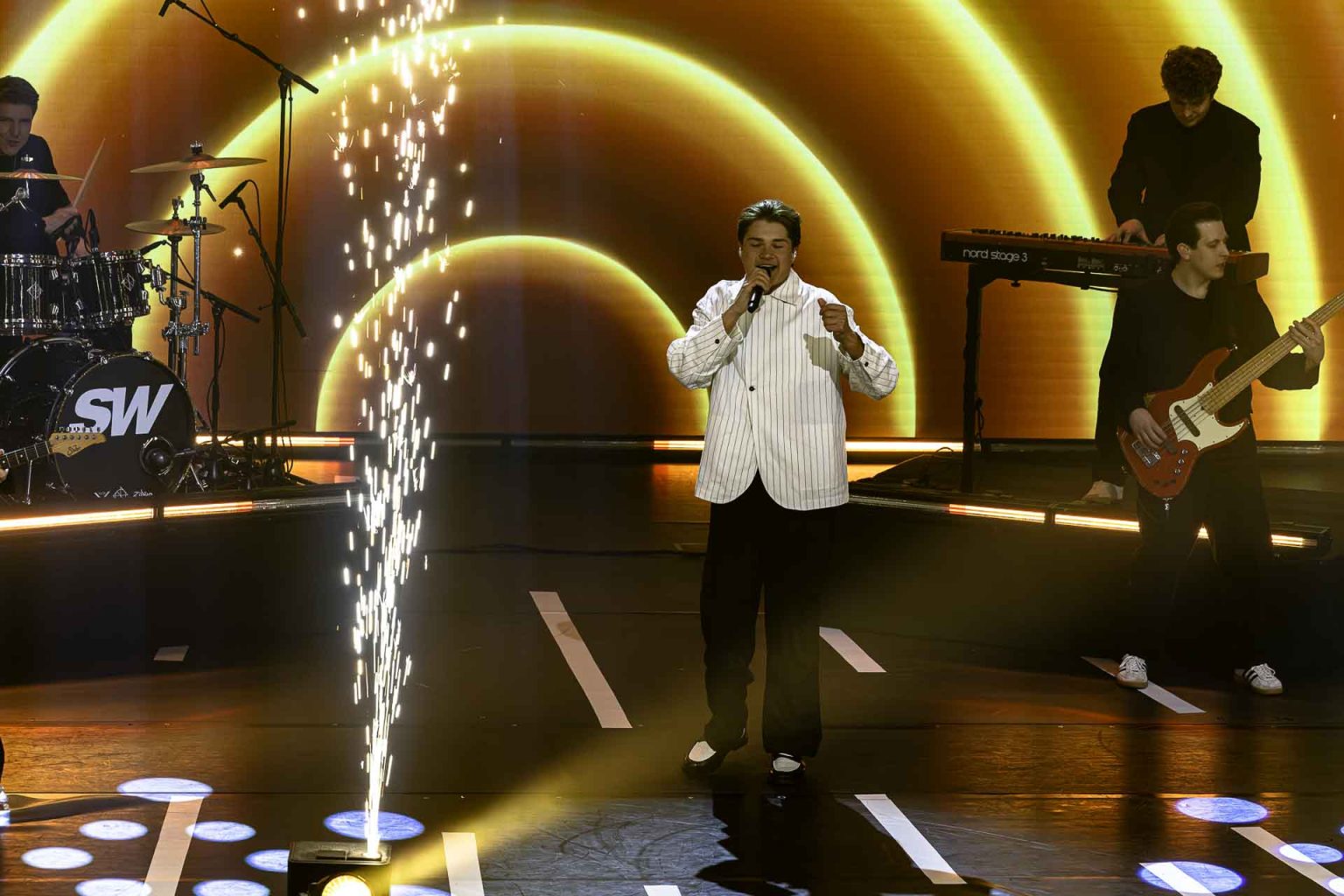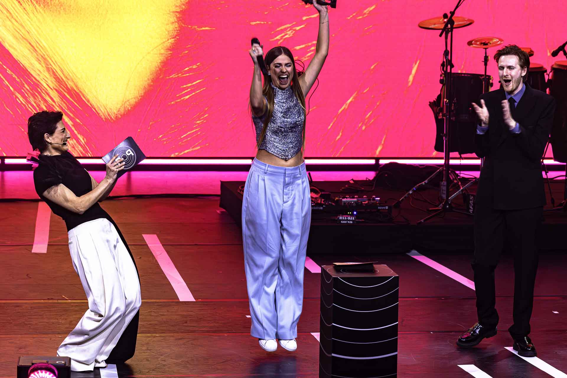 Na het eerste moment op de gekleurde loper was het tijd voor de show. En nu konden niet alleen de genodigden genieten, maar heel Nederland kon vanuit de buis meekijken naar de nominaties. Een grote teller werd weergegeven die aftelde van 60 naar 0. Daarna volgden de interviews met de genomineerden. Het doek viel na deze interviews en een harde popklank klonk uit de boxen. Het podium werd klaargemaakt voor het eerste optreden van de avond. Kensington. Met hun nummer ‘A Moment’, die te vinden is in hun album ‘First Rodeo’. Dit jaar was Kensington genomineerd, in de categorie ‘Rock’. Het lijkt alsof Kensington begint aan een tweede carrière. Het publiek klapte mee op de beat en Kensington bleek de perfecte artiest voor de opening van de Edisons.