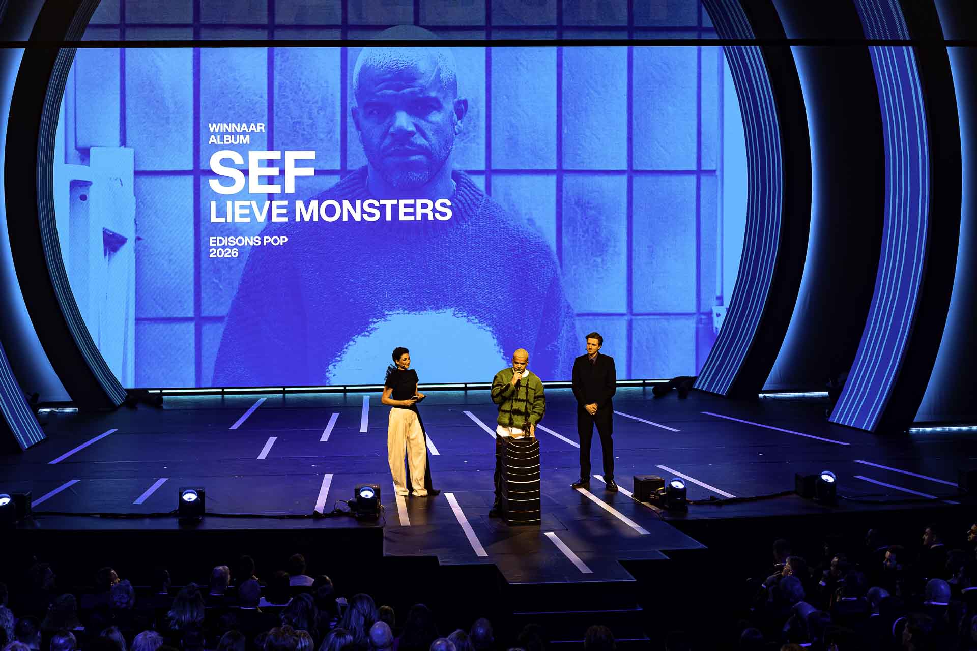 De laatste Edisons werden uitgereikt door Koen van Heest, hij maakt onderdeel uit van de Bankzitters, maar is voornamelijk bekend als de liefde van Roxy Dekker. Dit was onverwachts, al helemaal omdat zijn vriendin voor twee van de drie categorieën was genomineerd. Op dat moment was het eigenlijk al duidelijk in de zaal, het kan niet anders dat Dekker weer een Edison meeneemt, misschien wel twee. Koen van Heest had ooit aangegeven dat het een droom was om ooit op het podium te staan van de Edisons. Alhoewel dit niet per se de gewenste manier was. Tijdens de categorie ‘Album’ won Sef met zijn album ‘Lieve Monsters’. “Het doet pijn om de wereld pijn te zien hebben”, vertelde Sef. “Muziek maken helpt en we moeten niet opgeven”, eindigde hij zijn speech.