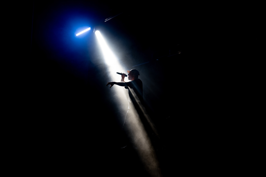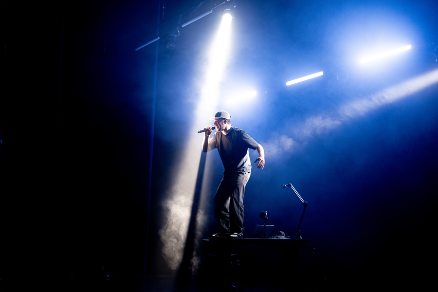 Zijn nummers werden melodieus en gevoelig voorgesteld via sounds op zijn laptop, aangevuld met voorgeprogrammeerde pianoloops, keys en beats. Ze groeiden uit door zijn zegzang en raps, intiem waar nodig, uitbundig waar het kon. De avond bewoog moeiteloos tussen die twee uitersten, van fluisterstille passages naar momenten die de zaal lieten meebewegen.