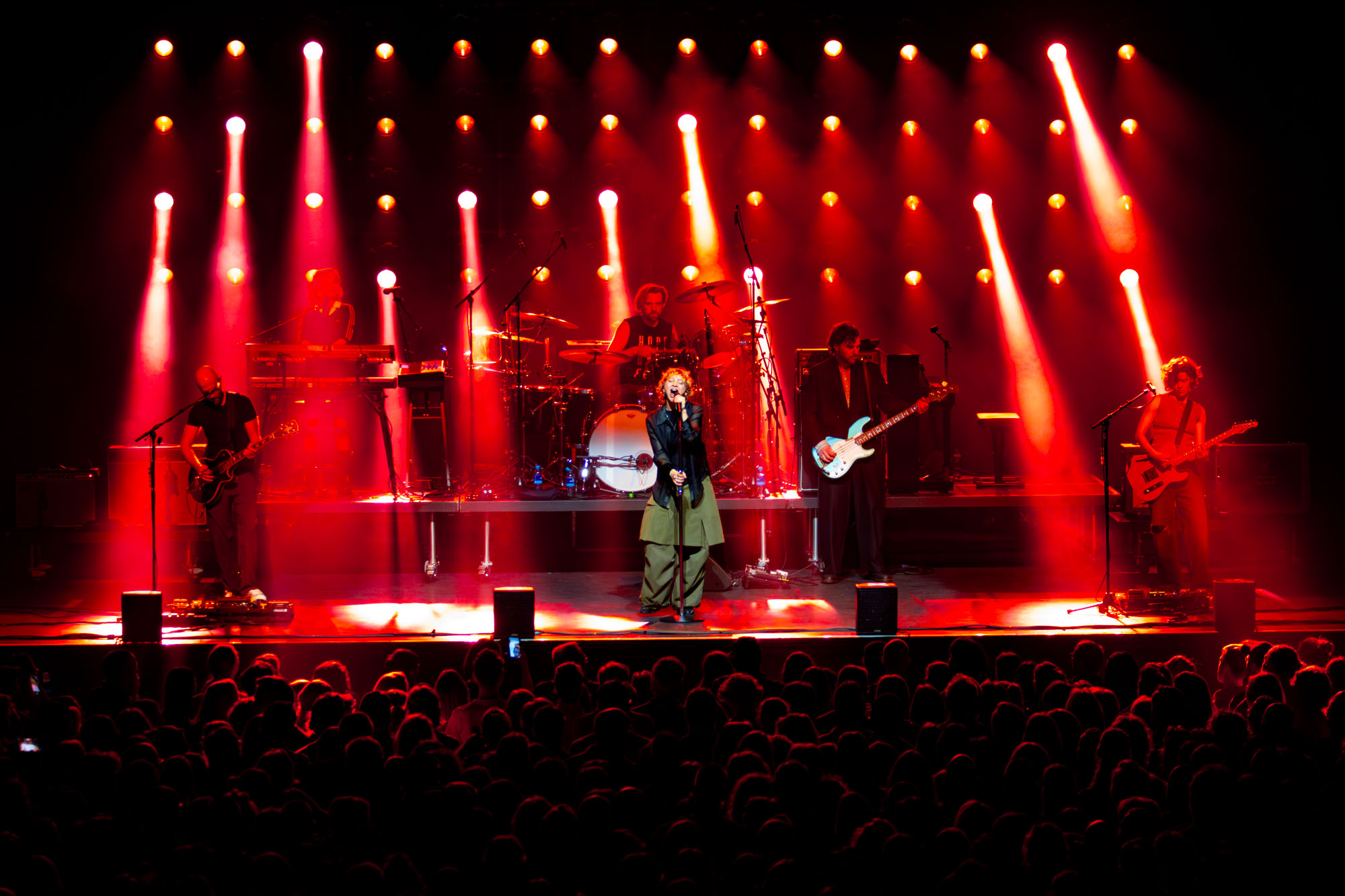 ‘Won’t Cry’, ‘I Apologize’ en ‘Seventeen’ volgden elkaar op in een set die soepel schakelde tussen nieuwer werk en oud vertrouwde nummers. De band klonk strak en ingespeeld, zonder dat het ten koste ging van de spontaniteit op het podium. Jacqueline nam regelmatig de tijd om het publiek aan te kijken, iets te vertellen of even te glimlachen naar iemand in de voorste rijen. Bij ‘Out Of My Bed’ ging de sfeer een tandje verder omhoog. Het nummer deed precies wat het altijd al deed: iedereen tegelijk laten meezingen. De band speelde het alsof het de eerste keer was, zonder de automatische piloot die bij klassiekers op de loer ligt. En Jacqueline was energiek als altijd