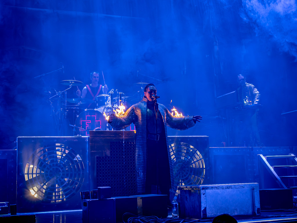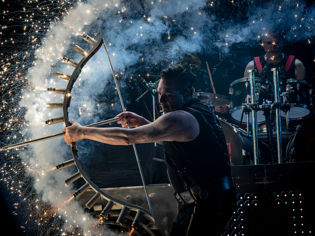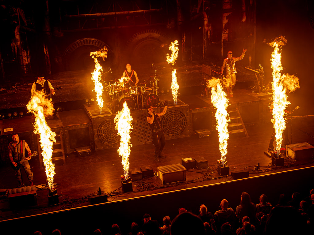 ‘Ausländer’, ‘Du riechst so gut’ en ‘Asche zu Asche’ volgden elkaar op en ook werd bij sommige nummers de Till Hammer uitgevoerd, gehurkt zittend en hamerend op het bovenbeen, een typische Till Lindemann performance act.