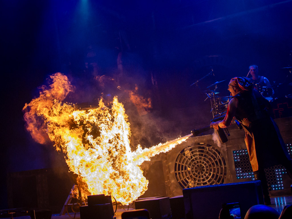 De nummers volgden elkaar op met vlammen en rook en hier en daar een oorverdovende knal. Wat een energie kwam er vanuit de band. De drumstokken waarmee XOPH drumde waren een soort sterretjes en ook de fakkels op de gitaren van Daniel en Farp waren een knap staaltje pyrowerk. Ook de brandende microfoonstandaard hadden de meesten niet eerder gezien en Farp had moeite met zingen vanwege de vlammende microfoon, wat hij zelf nog het grappigst vond.
